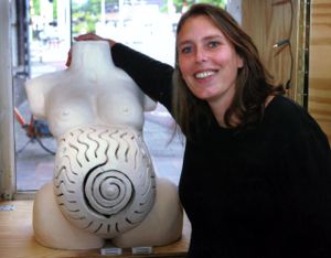 Gevormd in de materie klei, ontstaan er sculpturen die o.a. herkenning en humor uitstralen (zwangerschap, volle figuren, dierlijke wandsculpturen).